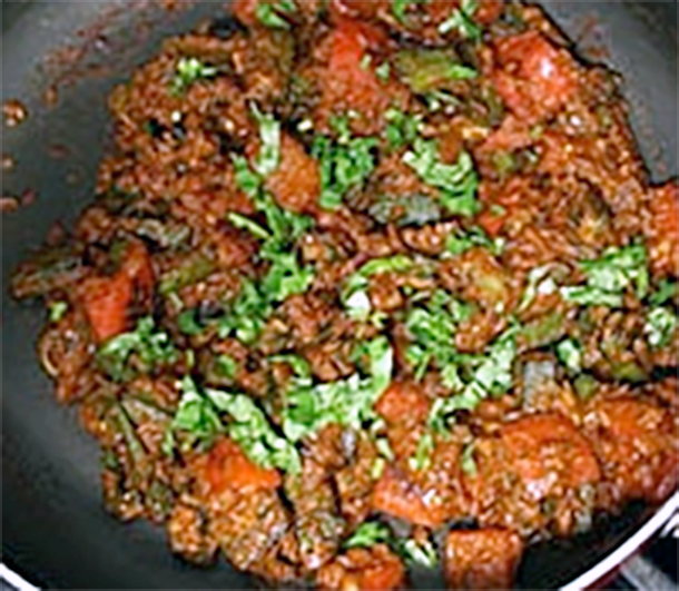 Crush the kasoori methi and add into the gravy, mixing thoroughly to combine. Finally add the cooked okra and bell pepper, mix well and allow all the ingredients to warm through.