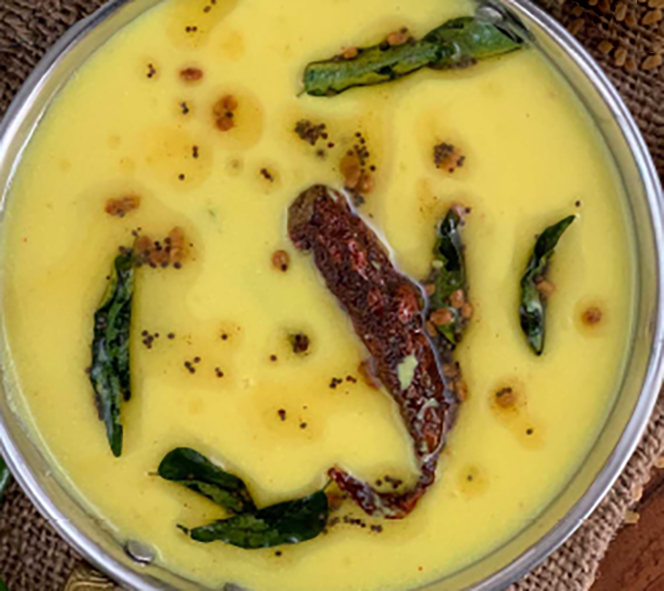 Kadhi is a traditional Indian recipe (from Gujarat) for a classic curried vegetarian soup of aromatically spiced yoghurt thickened with gram (chickpea) flour. The full recipe is presented here and I hope you enjoy this classic Indian version of: Kadhi.