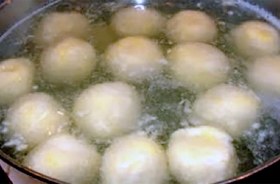 Form the dough into walnut-sized dumplings then bring a large pan of salted water just to a simmer. Add the dumplings and cook for about 15 minutes. Drain with a slotted spoon and serve immediately, whilst still hot. Traditionally these were served as a main dish accompanied by brown gravy, but they work equally well as an accompaniment, particularly for game dishes and sauerbraten.