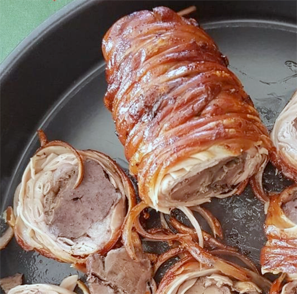 Finally, wrap the entire surface of the kokoretsi with the intestines as tightly as possible (just take care that the intestines do not tear).