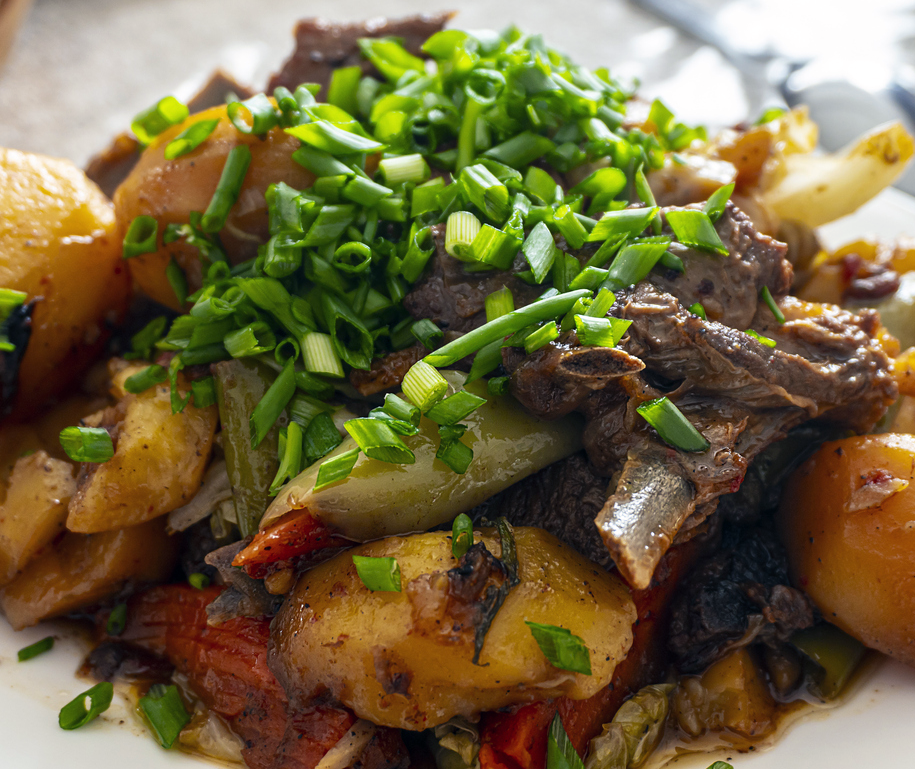 Kuurdak (Stewed Meat, Onions and Potatoes) is a traditional Kyrgyz (from Kyrgyzstan) recipe for a classic stew of meat, potatoes and onions served topped with raw onion and spring onion. The full recipe is presented here and I hope you enjoy this classic Kyrgyz version of: Stewed Meat, Onions and Potatoes (Kuurdak).
