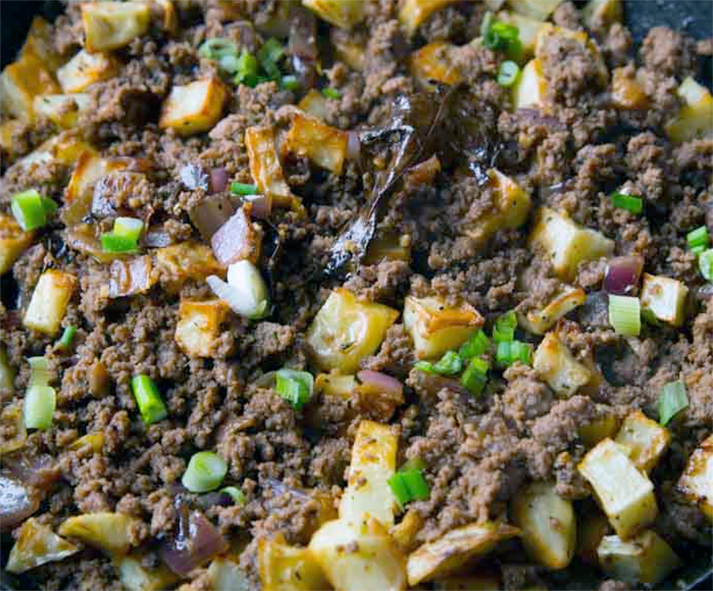 Macanese Minchi (Minced Meat Potato Hash) is a traditional Macanese (from Macau) recipe for a classic fried dish of minced beef and pork with potato onion and tomato in a soy sauce, Worcestershire sauce and brown sugar base that's the national dish of Macau. The full recipe is presented here and I hope you enjoy this classic Maccanese dish of: Minced Meat Potato Hash (Macanese Minchi).
