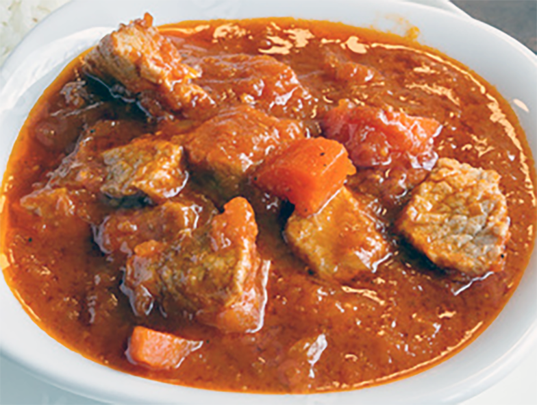 Add the sweet potato pieces, cover the casserole and bring to a simmer. Cook gently for about 20 minutes, or until all the ingredients are tender and cooked through. During this time, if the sauce becomes too thick or begins to burn ad a little water to thin it down.