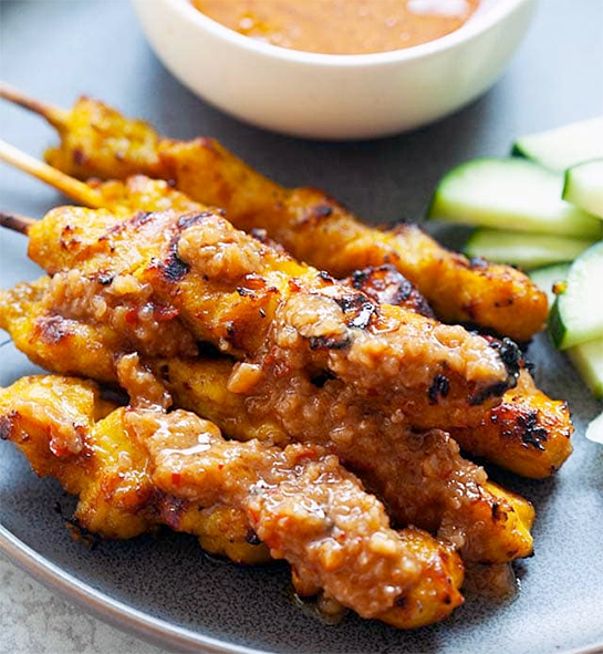 Malaysian Chicken Satay is a traditional Malaysian recipe for a classic dish of marinated chicken meat threaded on skewers, barbecued and served with a peanut dipping sauce. The full recipe is presented here and I hope you enjoy this classic Malaysian version of: Malaysian Chicken Satay.