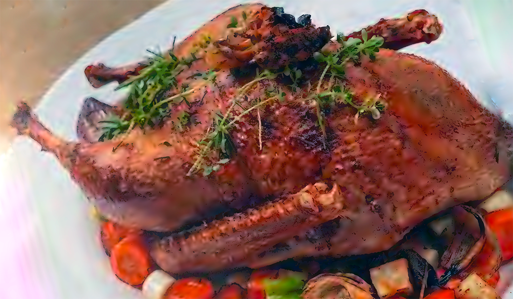 This is a traditional Swiss-German recipe. St Martin is also one of the patron saints of the Swiss Guard at the Vatican, so this counts as a Vatican recipe and, indeed, it is prepared by the Swiss Guard chef at the Vatican. This is one of the traditional European goose recipes that uses mugwort as a bittering herb in the stuffing.