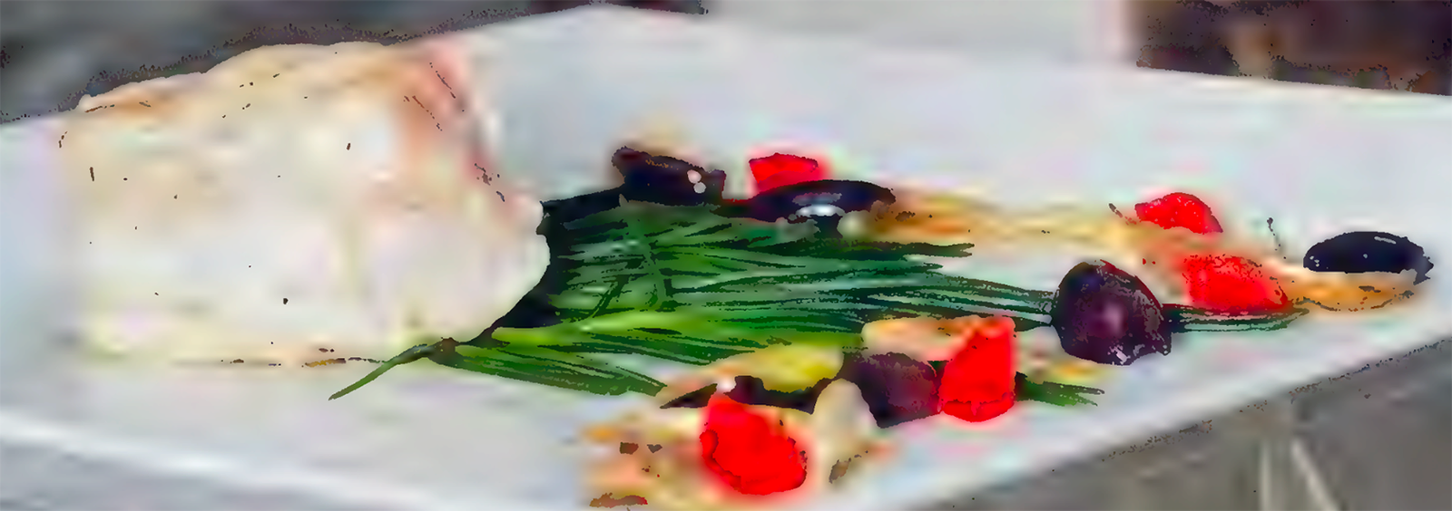 110g pitted black olives, halved