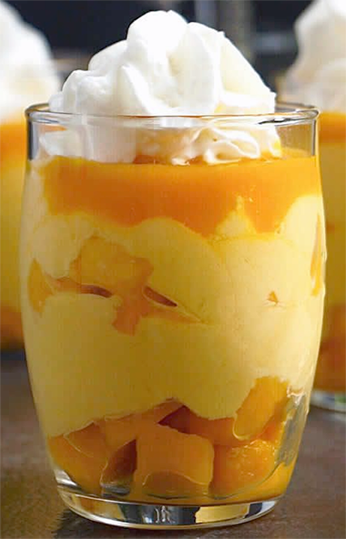 Mousse à la noix de coco et coulis de mangue (Coconut Mousse and Mango Coulis)