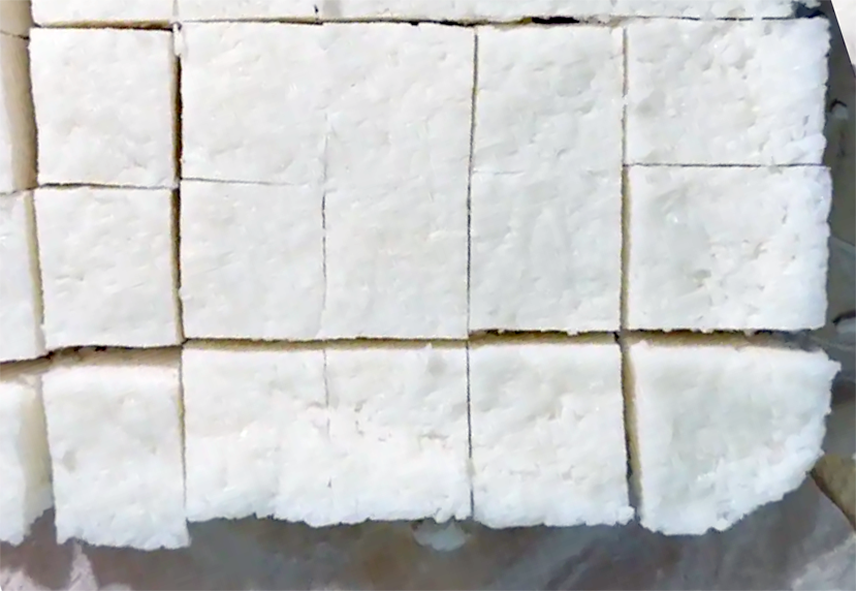 Slice to size, and your nasi impit is ready to serve.
