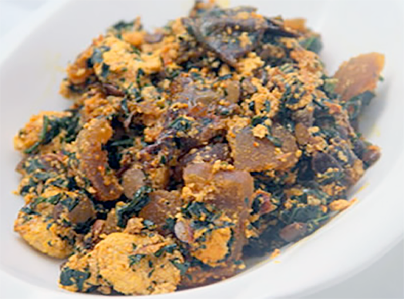Efo is the Nigerian for 'stew' (or 'soup' in West African parlance). Egusi seeds are a variant form of watermelon (Citrullus lanatus var. lanatus) seeds with a fleshy pericarp, commonly known as 'egusi seeds' that are extensively cultivated in Nigeria and Central Africa for the high protein and carbohydrate content of the edible seeds. They are often added, pulverized to a powder, as a thickener to stews, as in this recipe.