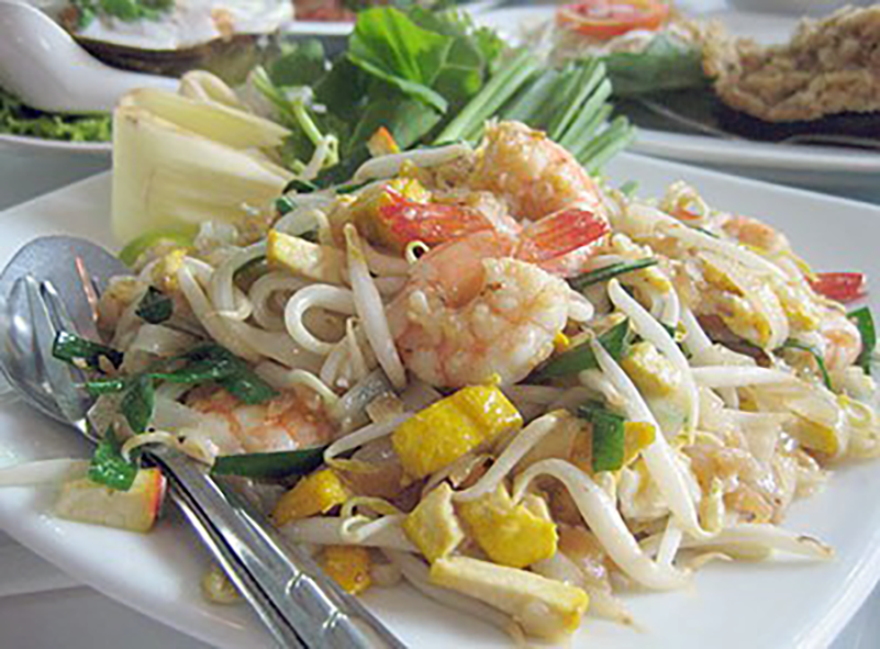Pad Thai ผัดไทยกุ้งสด is a traditional Thai recipe for a classic stir-fry dish of noodles, tofu, beansprouts, Chinese chives and prawns in a hot and spicy base that's served garnished with banana flower and peanuts. The full recipe is presented here and I hope you enjoy this classic Thai version of: Pad Thai.