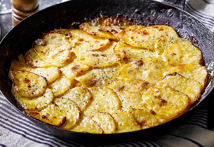 Cover and cook gently for about half an hour until the potatoes and onions are cooked through. Add the remaining cheese on top, season and place under a pre-heated grill. Cook until the topping is golden brown and bubbling then serve straight from the pan.
