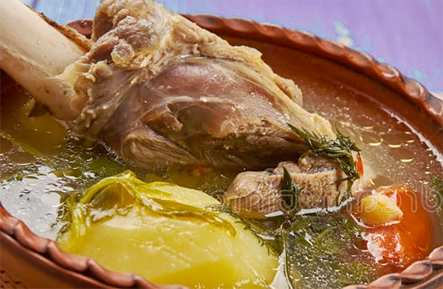 As soon as the butter has melted ladle the soup into warmed bowls, garnished with crumbled dried mint, if desired.
