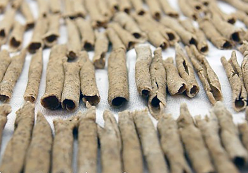 A the end of this time roll the dough out to about 2mm thick then shape into makaruli (macaroni) shapes by wrapping the dough around the handle of a wooden spoon and slicing. Set aside to dry and store.