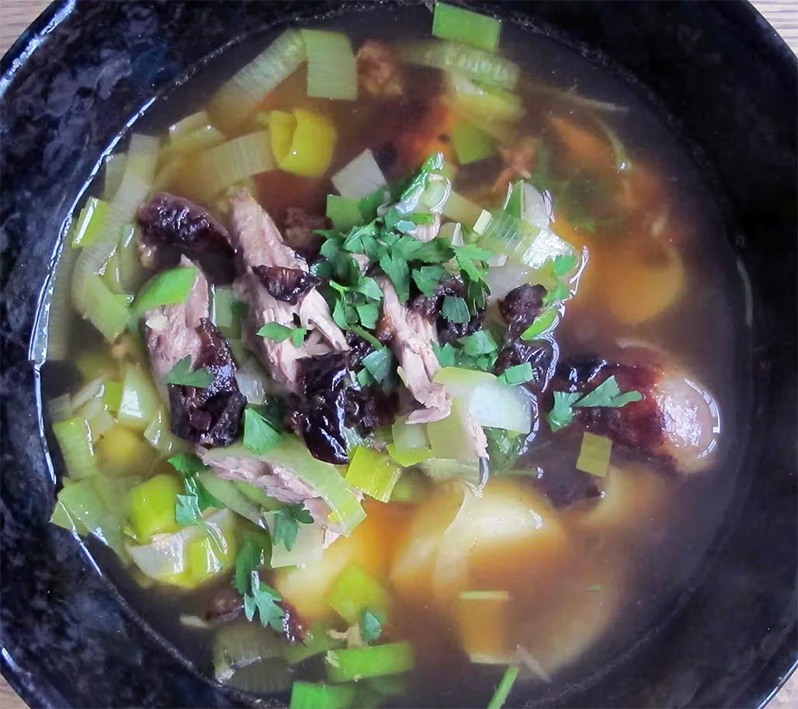 Perfect Cock-a-leekie Soup is a traditional Scottish recipe for a classic soup chicken leek and carrot, often including barley. The full recipe is presented here and I hope you enjoy this classic Scottish version of: Perfect Cock-a-leekie Soup.