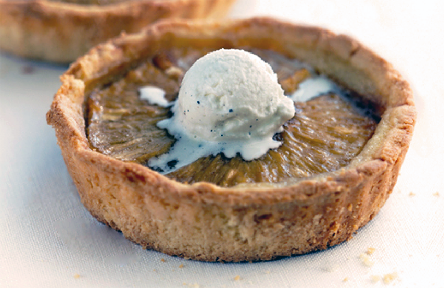 Allow the tarts to cool in the tins for 10 minutes then carefully unmould. Serve warm, topped with a dollop of ice cream.