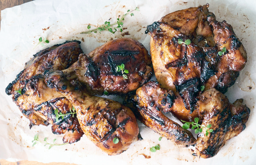 If roasting: Pre-heat your oven to 220ºC. Wrap a baking tray with foil, then place a rack on top. Remove chicken from marinade with tongs (drip off the excess but don’t wipe down.) Place pieces about 5cm apart on the rack. Roast for 35-45 minutes or until chicken breasts reach 160ºF and chicken legs/thighs/wings hit 170ºF. Remove, tent with foil, and allow to rest for 5 minutes before serving.