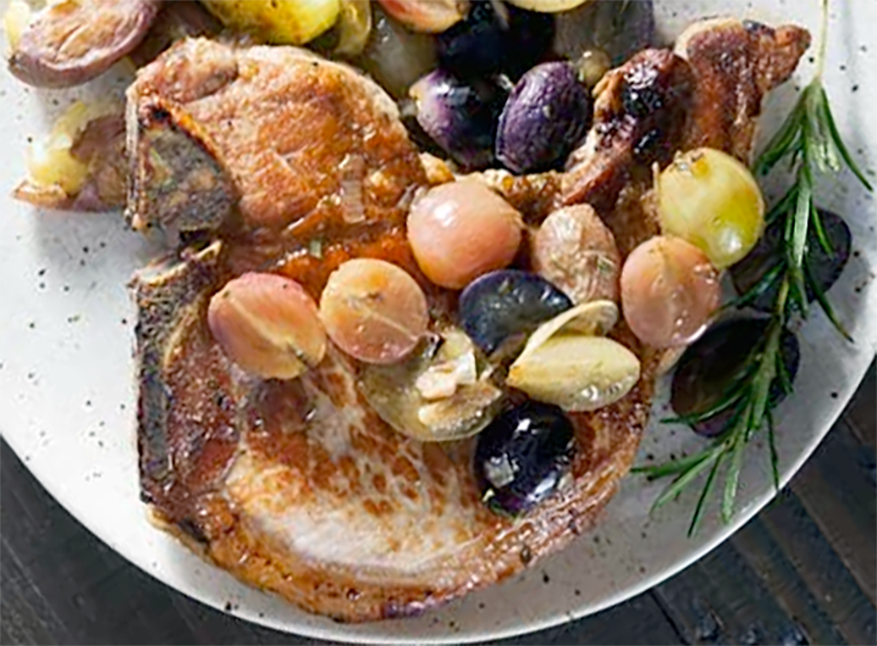 Pork Chops with Roasted Grapes is a modern New Zealand recipe for a dish of pork loin chops roasted with grapes, parsnips and potatoes. The full recipe is presented here and I hope you enjoy this classic New Zealand version of: Pork Chops with Roasted Grapes.
