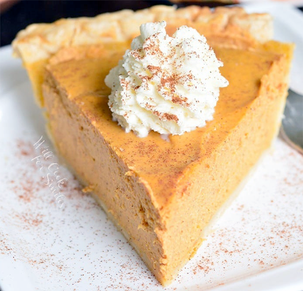 Combine the pumpkin, remaining sugar, salt and spices. Blend until smooth then add the eggs and evaporated milk. Mix until smooth then pour the mixture into the pie shell. Place in an oven pre-heated to 180°C and bake for about 60 minutes, or until the pastry is golden and the filling has stet. Allow to cool completely before cutting into wedges and serving.