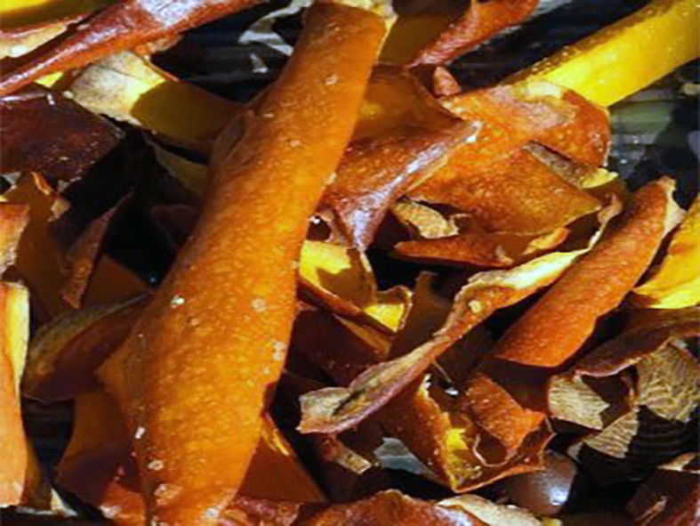 Pumpkin Crisps a Classic British recipe for a snack of pumpkin skin pieces baked until they're crisp.