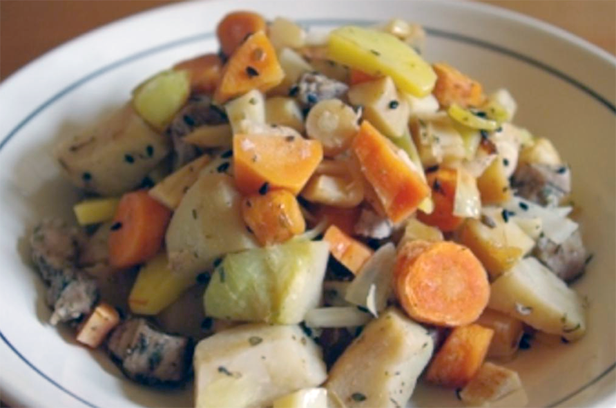 Schweinefleisch mit Wurzelgemüse und Äpfeln (Pork with Root Vegetables and Apples)