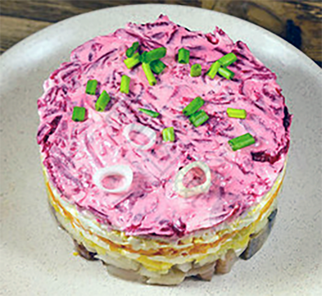 Originally a Russian dish, this layered herring-based salad is now a dish common to Moldova, he Ukraine and its native Russia.