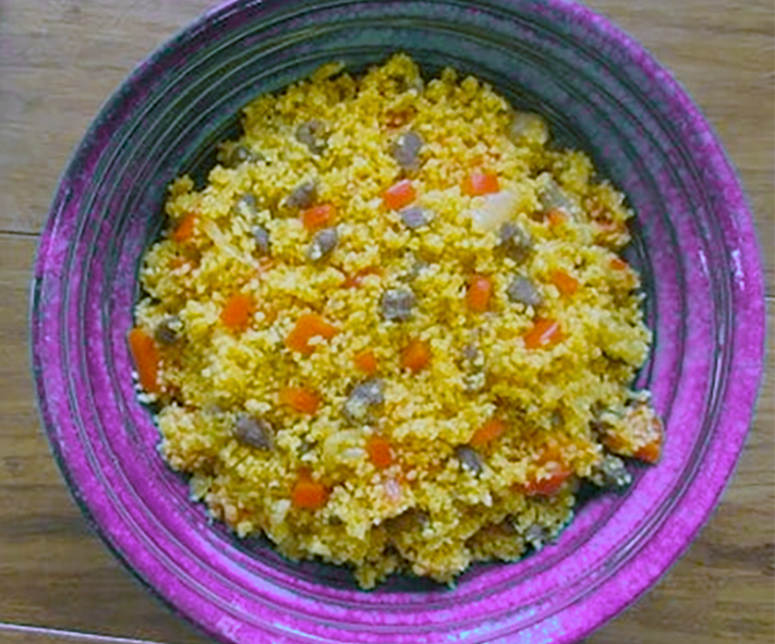 Sierra Leonean Style Couscous is a traditional Sierra Leonean recipe for a classic dish of couscous blended with beef, onion and bell peppers. The full recipe is presented here and I hope you enjoy this classic Sierra Leonean version of: Sierra Leonean Style Couscous.