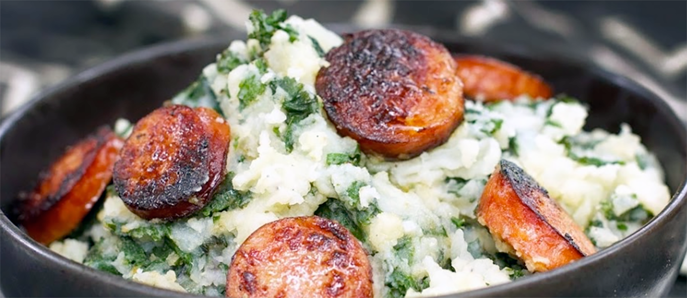 Sprinkle with a pinch of salt and a few twists of black pepper. Add the kale mixture to the potatoes and mash until thoroughly combined.