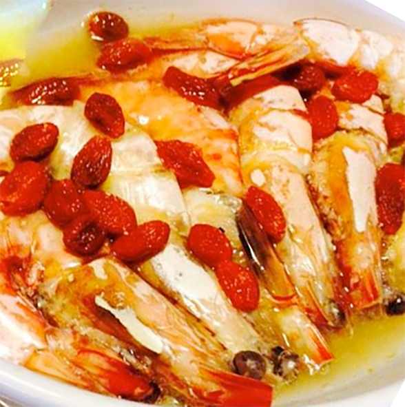 Steamed Prawns with Wolfberries is a traditional Singaporean recipe for a classic starter or snack of king prawns marinated with garlic, wolfberries, rice wine and brown sugar before being steamed and which is often served as street food. The full recipe is presented here and I hope you enjoy this classic Singapoream version of: Steamed Prawns with Wolfberries.