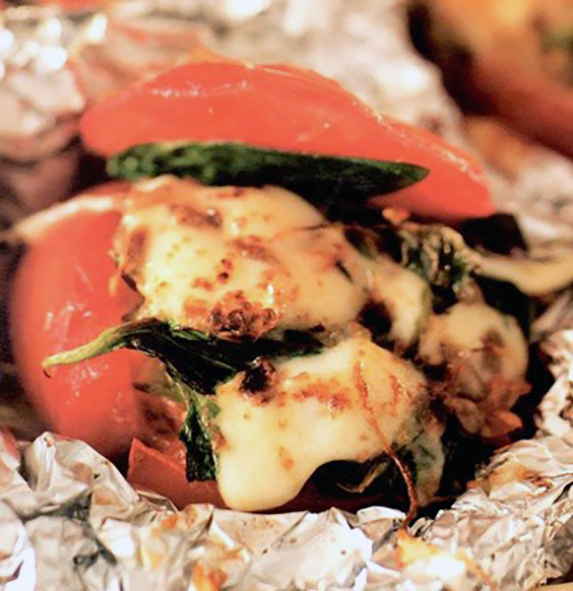 Use the resultant cheese and spinach mixture to fill the tomato shells, then replace the reserved tops.