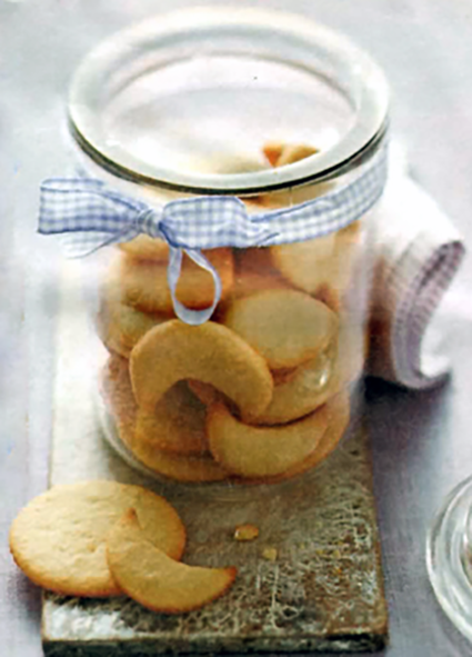 Sun and Moon Biscuits: A British recipe for a classic set of biscuits made with semolina flour and flavoured with almond essence that are cut into round sun and crescent moon shapes.