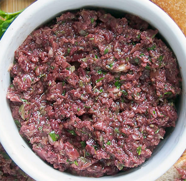 This is the classic Mediterranean paste of olives, capers and anchovies blended together into a flavoursome spread or dip. This can be made either smooth or coarse and should be served with bread or crudites (sliced into batons).
