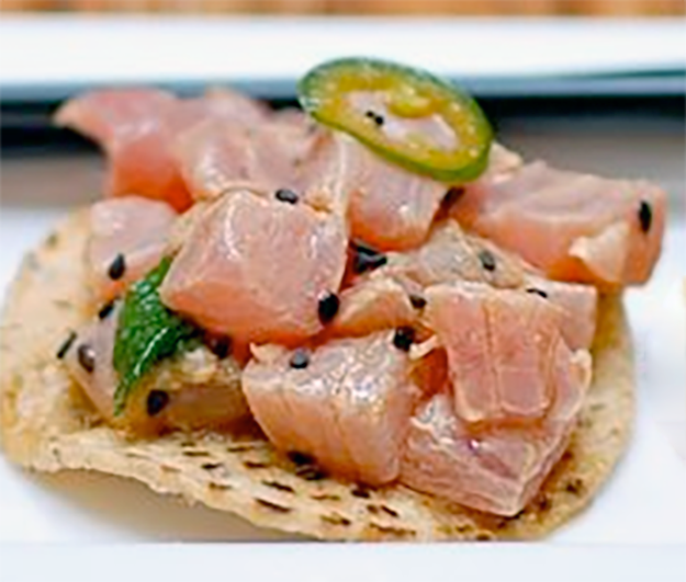 Ceviche or seviche is a popular South American method for marinating fish in lime or lemon juice so that the acid of the juice effectively cooks or pickles it. However, as one of the methods for producing sashimi the Japanese have been pickling fish in vinegar or citrus juice for centuries. This recipe for pickled tuna is based on those ancient Japanese recipes. South American ceviche is generally prepared with chillies, but the Japanese version is served with wasabi (but you can use horseradish).