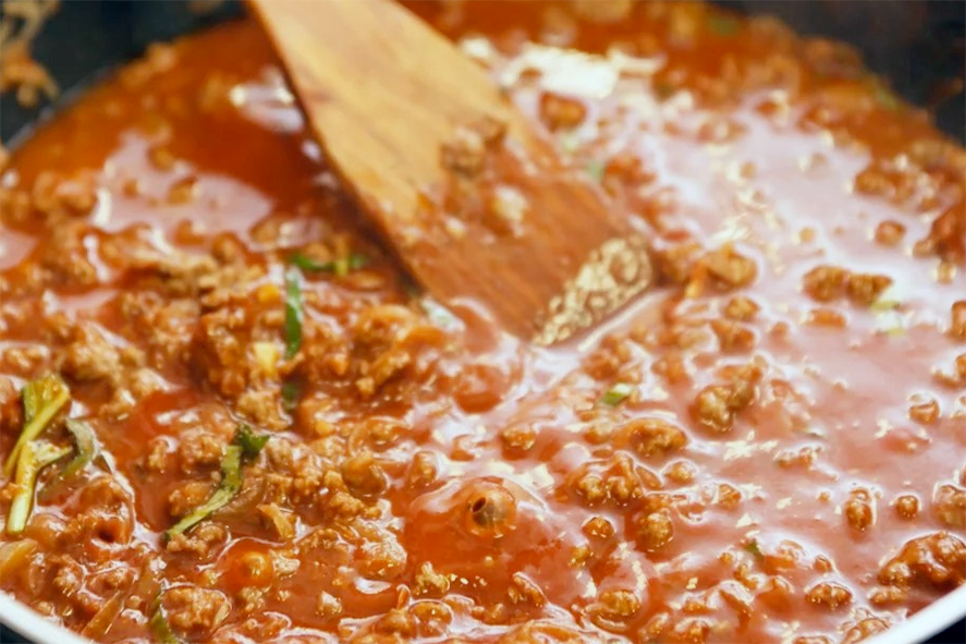 This is the classic Uruguayan pasta sauce made with minced beef. A version is also produced in Argentina and Guatemala, but there may be omitted from the basic tomato sauce.