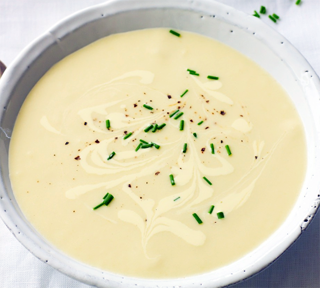 Vichyssoise Vichyssoise Soup is a traditional French recipe for a classic soup of onion, leek and potato cooked in vegetable stock that's pureed and finished with milk, cream and herbs before being served chilled. The full recipe is presented here and I hope you enjoy this classic French version of: Vichyssoise Soup (Vichyssoise).